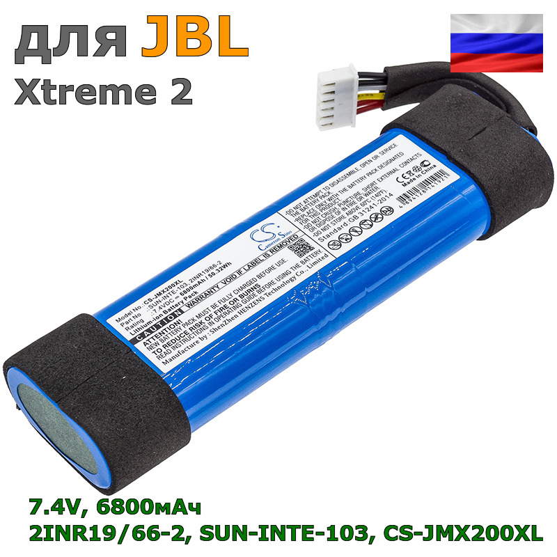 Подходит для JBL Xtreme 2Подходит для замены аккумуляторов с номерами (partNo): 2INR19/66-2, SUN-INTE-103, CS-JMX200XL