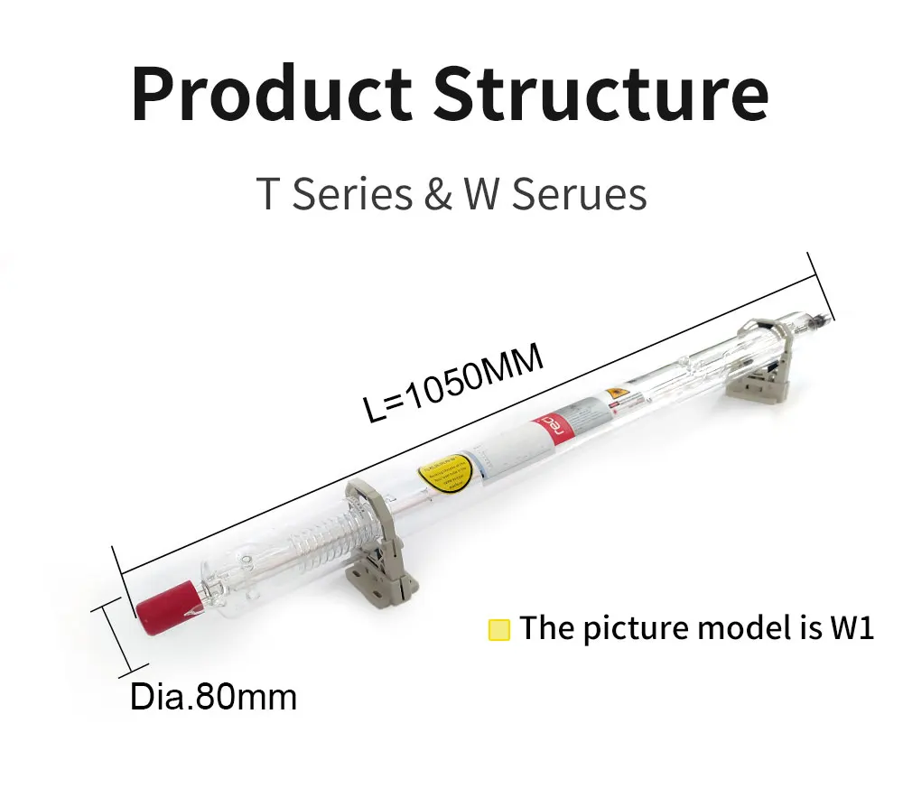 Reci W1/T1 75 Вт CO2 лазерная трубка диаметром 80 мм/65 мм для лазерного гравировального