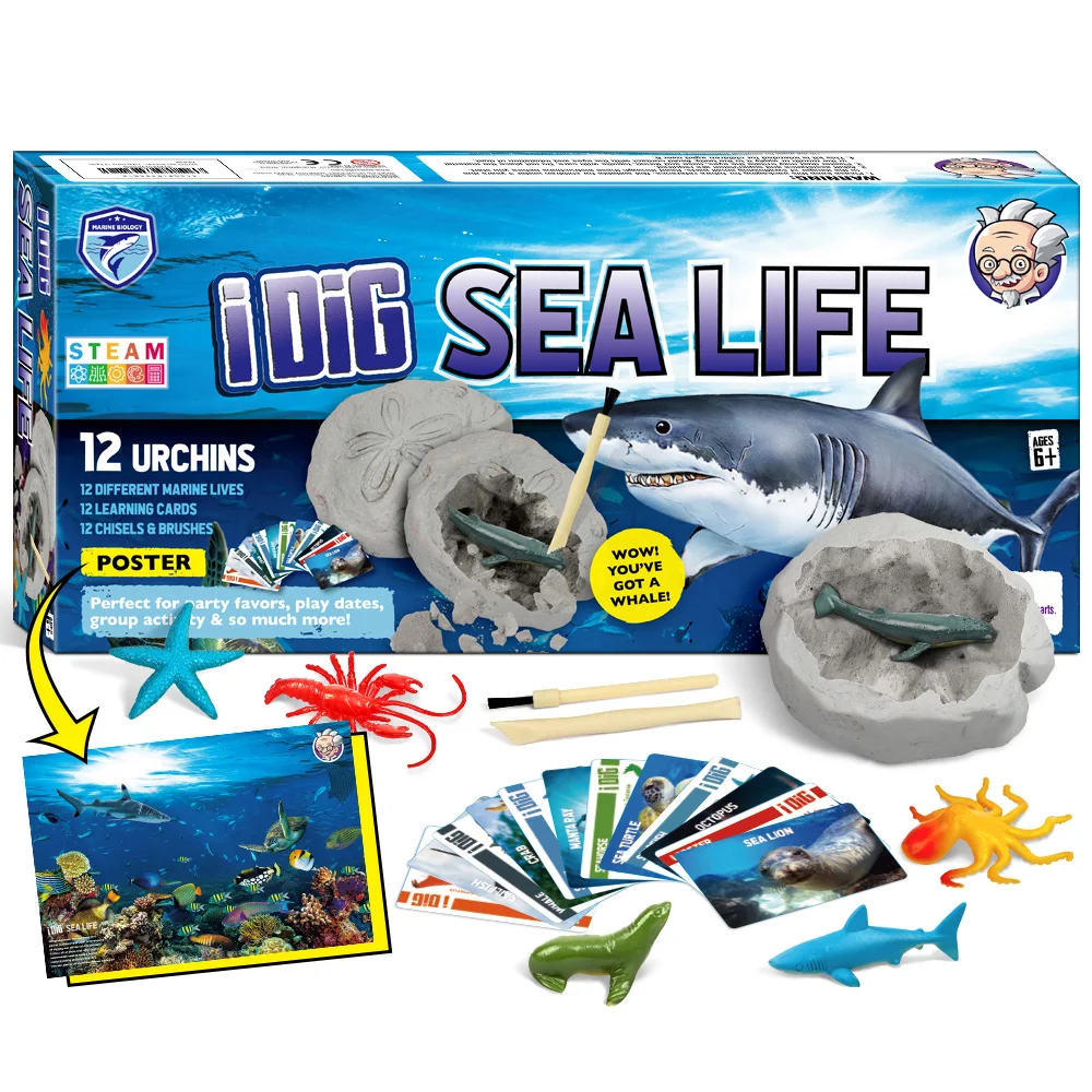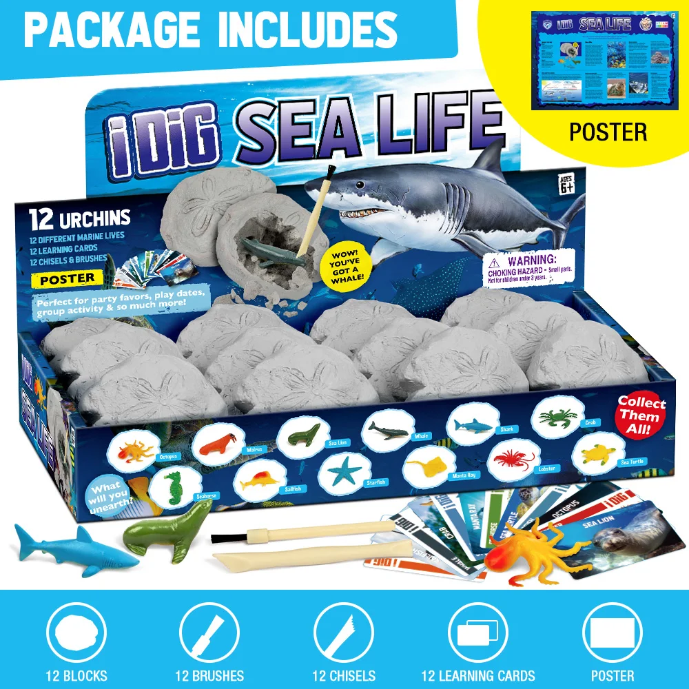 🐟Копать 12 морских животных внутри 12 блоков урчина: каждый может копать, как настоящий палеонтолог, выкапывая 12 уникальных морских животных. Найти акулу, морского льва, Омаров и многое другое! Как только выкопали, ознакомьтесь с описанием морского животного, чтобы узнать больше о ваших открытиях. Укажите имя каждого морского животного.