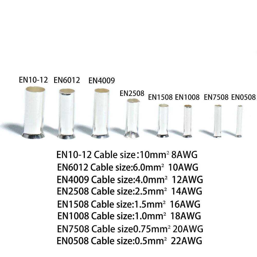 500pcs Tin-coated Tube-shaped Bare Terminals Wire Crimp Connector Cold pressing Electrica Non-Insulated