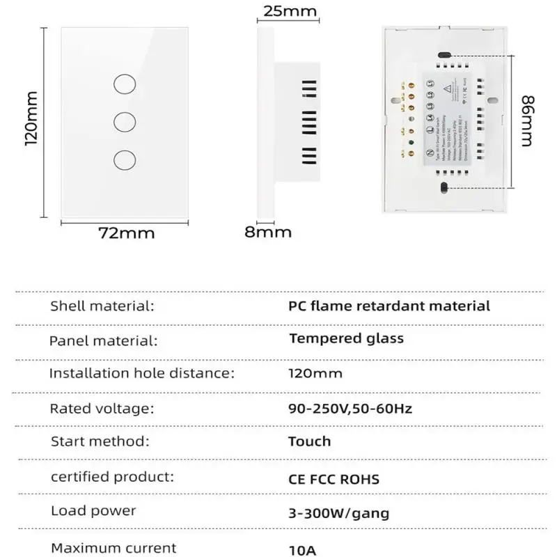* Управление одним живым проводом, без нейтрального провода, легко установить, может непосредственно заменить старый переключатель