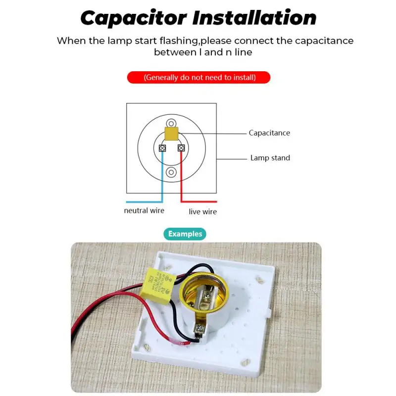 1. Конденсатор должен быть плотно соединен с L и N лампы L1, не за переключателем.