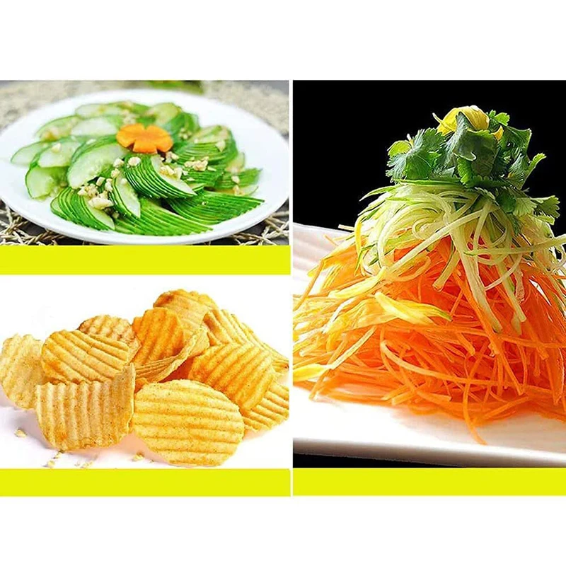 【Бритва острыми и взаимозаменяемыми пузырьками: поставляется с 3 взаимозаменяемыми лезвиями, которые позволяют вырезать 8 ломтиков всего за одно действие! Гладко растушевать различные фрукты и овощи!