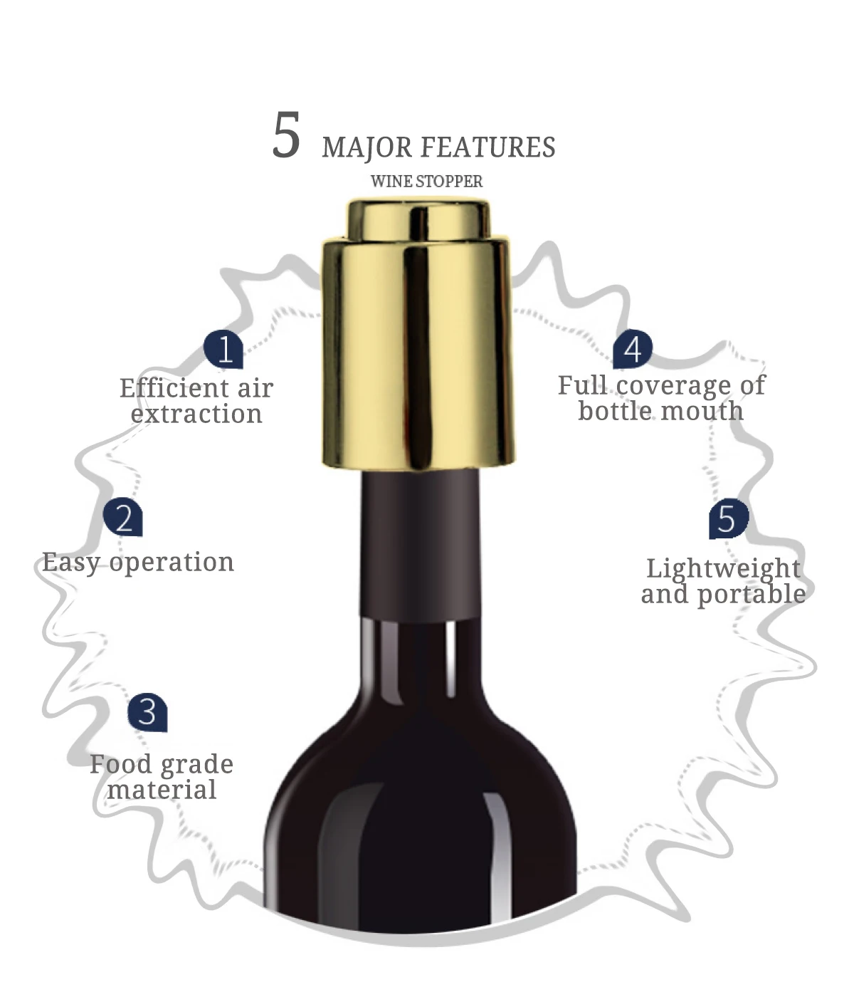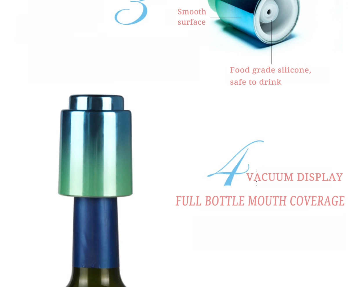 Всегда грустно, что ваше любимое вино плохо пахнет из-за неправильного сохранения. Таким образом, здесь мы оборудовали наш продукт с верхней системой запечатывания и качественными материалами, все для оптимизированной винной пробки, чтобы сохранить ваши напитки более свежими. Просто добавьте этот маленький помощник к вашей приятной жизни, время докажет, что это правильный выбор!