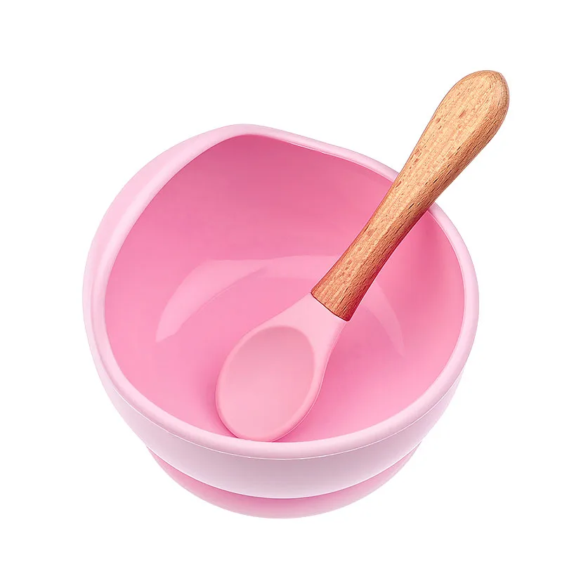 Чаша для кормления детей Ложка Вилка столовая посуда детская деревянная тренировочная тарелка силиконовая присоска Съемная детская посуда товары