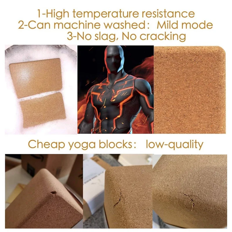 Натуральная пробка из Португалии: 100% экологичный пробковый блок для йоги изготовлен из высококачественной пробки из Португалии, в отличие от всех пенопластовых блоков, которые прочные и прочные, нескользящая поверхность обеспечивает устойчивость к запаху, а чечевица делает ваши руки сухими и удобными, что позволяет легко чистить влажным полотенцем или сушить на воздухе. Эти блоки для йоги высокой плотности также можно чистить с мылом и водой.