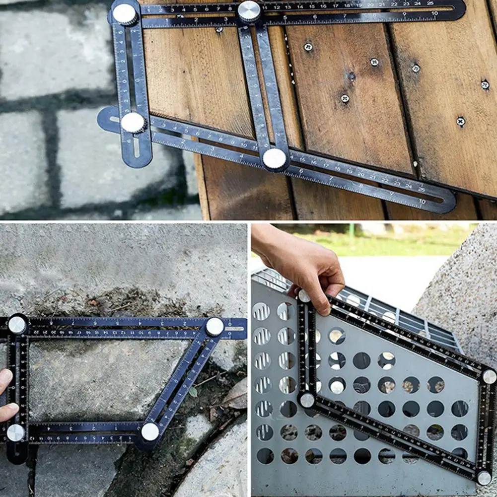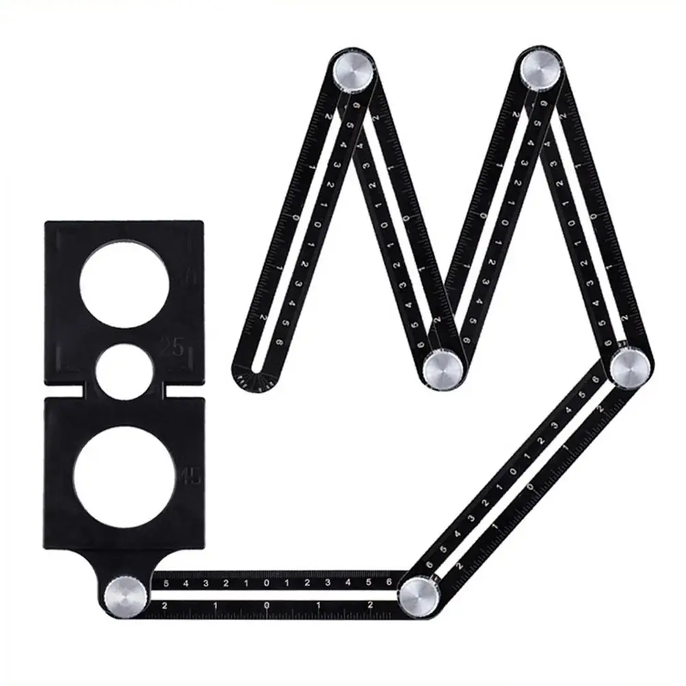 5. Улучшенная линейка для измерения угла: Эта угловая линейка имеет шестикомпонентную линейку и металлическую ручку с отверстием для позиционирования плитки. Вы можете отрегулировать шесть металлических ручек, чтобы точно создать желаемую форму, а затем найти нужное отверстие для сверления. С 6 складывающимися краями пользователи могут использовать инструмент для поиска угла, чтобы легко создавать и измерять специальные углы или формы для повышения эффективности работы.