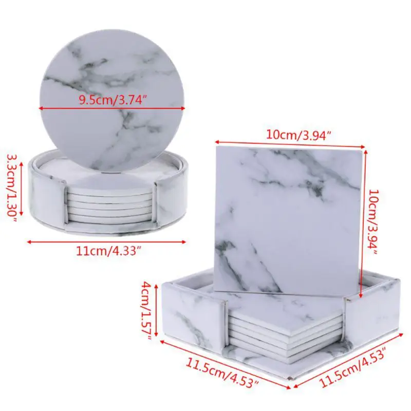 6 шт./компл. круглые квадратные подставки для напитков из искусственной кожи с мрамором, подставки для чашки, подставка для кухонной посуды