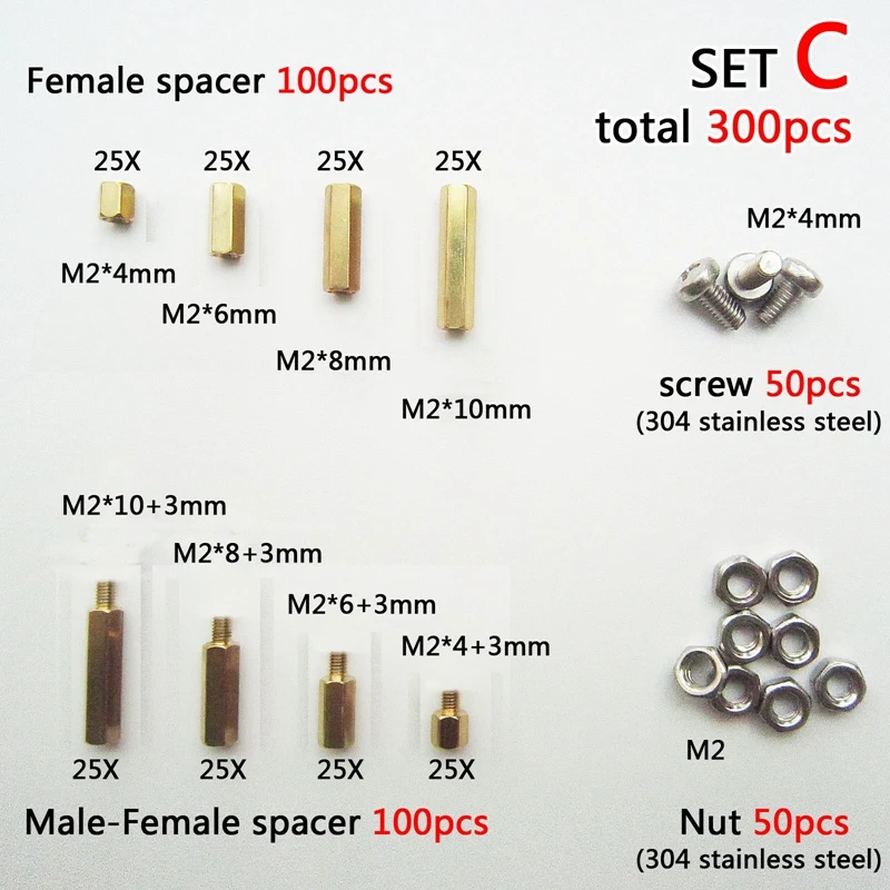 Этот набор включает в себя стойки «Мама-мама», «Мама-папа» разных размеров, винты и гайки.