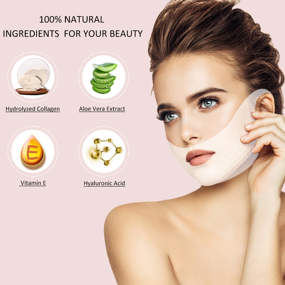 V маска для лица полна натуральных ингредиентов: витамин Е, морские водоросли, алоэ, гидрогель, коллаген и т. Д. Независимо от того, женщины или мужчины, Наша маска может увлажнить вашу кожу и получить вам великолепную v-образную линию лица. Даже если чувствительная кожа также может использовать нашу маску.
