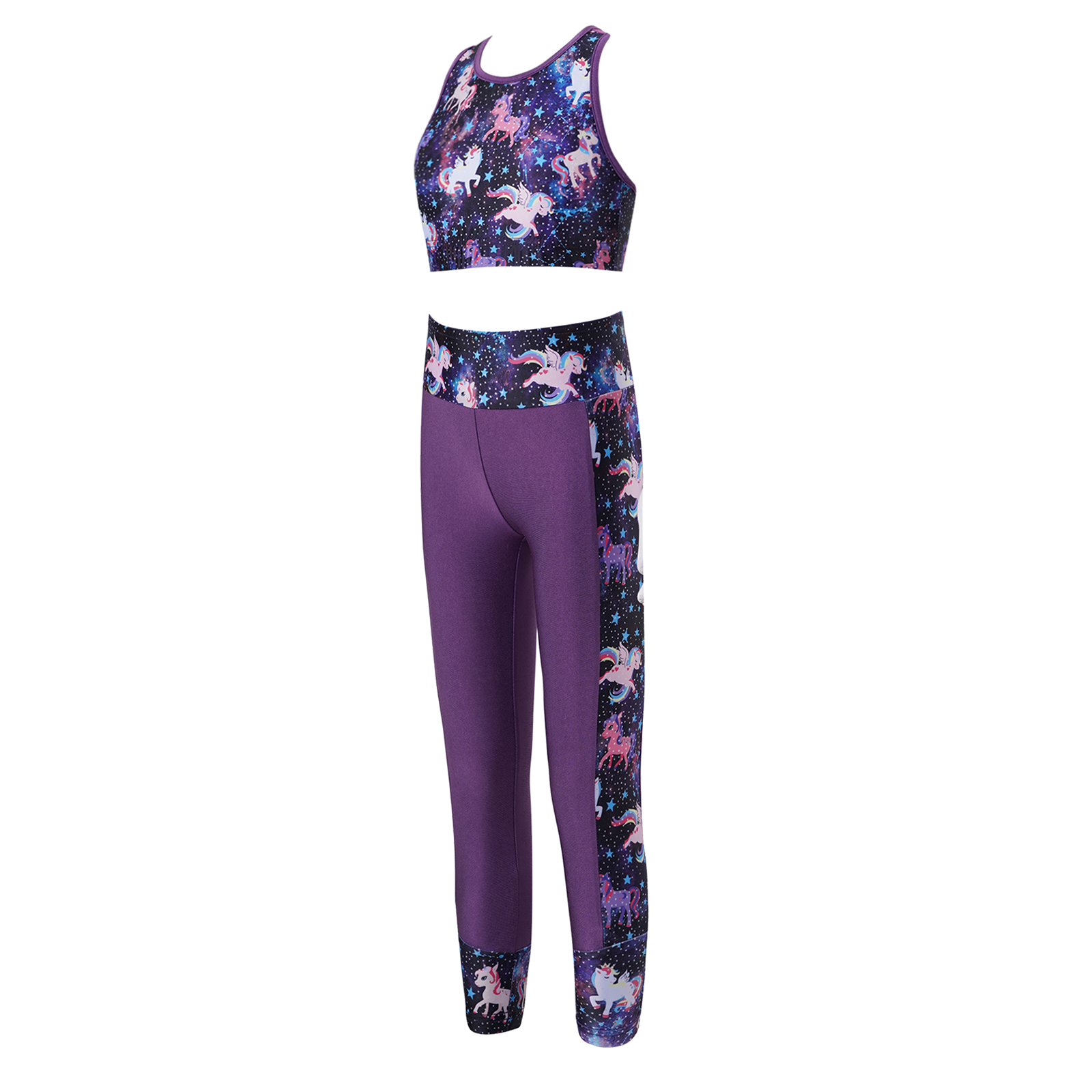 Летние Детские комплекты для занятий йогой, балетная гимнастика, спортивный костюм с принтом, спортивная одежда, укороченный топ с леггинсами, спортивные костюмы