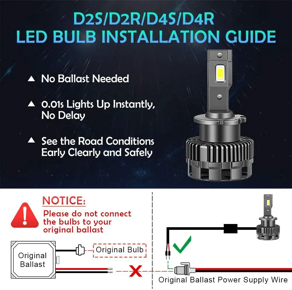 Неразрушающая установка: Plug & Play, прямое подключение к оригинальному Балласту HID.