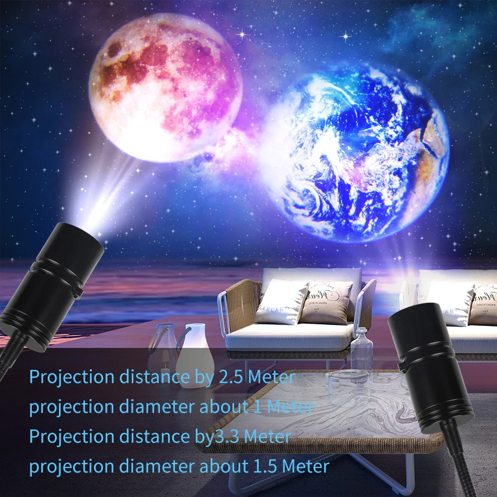 1. Есть два проекционных эффекта для земли и Луны. Чтобы изменить два эффекта, вам нужно только заменить пленку. Подходит для спальни светильник ing и фотографии, он может использоваться в качестве фона отладки светильник для различных случаев, чтобы создавать различную атмосферу.