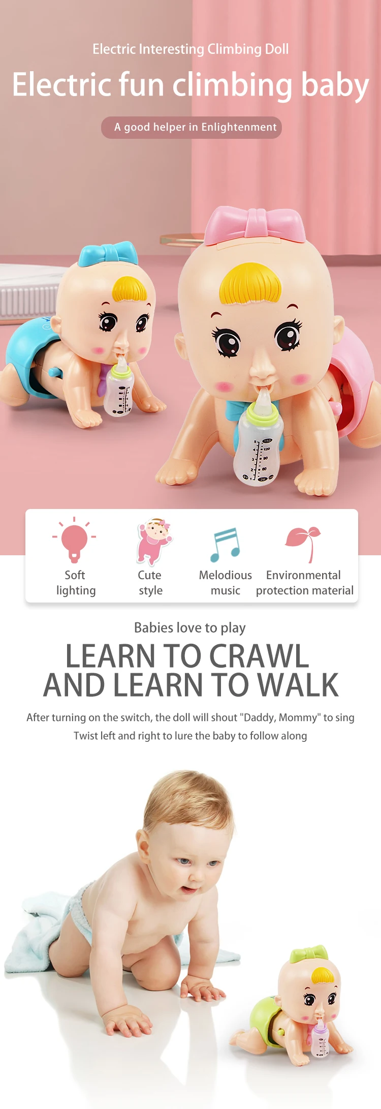 Детская кукла с пустышкой, ползающие игрушки для младенцев 6-12 месяцев, игрушки-головоломки для детей, электрические игрушки для малышей, Обучающие ползунки, Монтессори