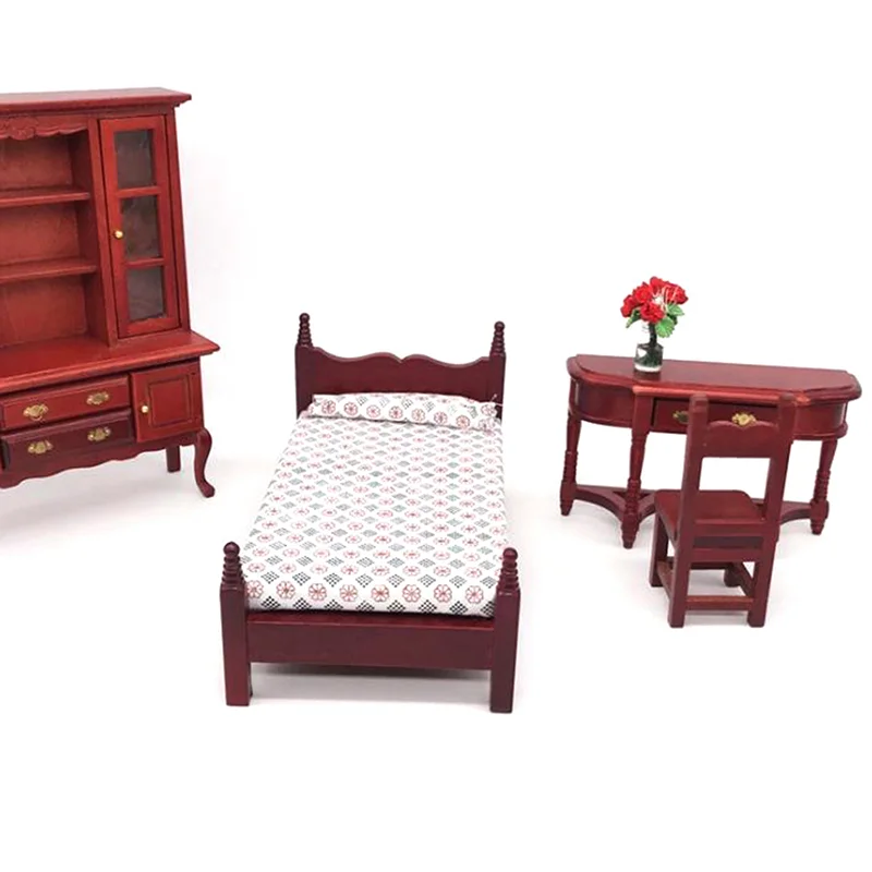 1:12 dollhouse miniature dolls furniture double bed, bedside table model