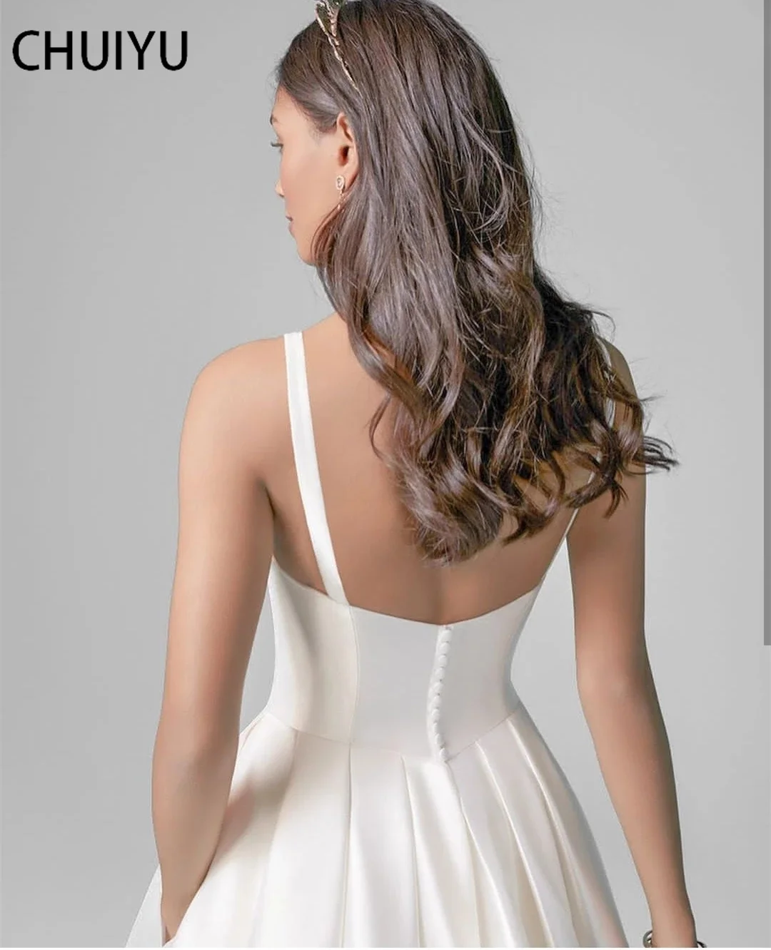 | HERBURNL простое свадебное платье с v-образным вырезом атласное блестящее B...US $600,00