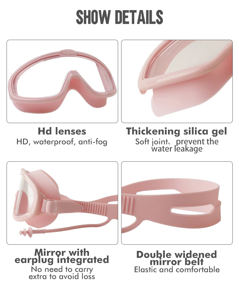 МосотоДетские плавательные очки с ушками силиконовые детские очки для плавания в бассейне противотуманные очки для мальчиков и девочек маска для дайвинга с Чехол
