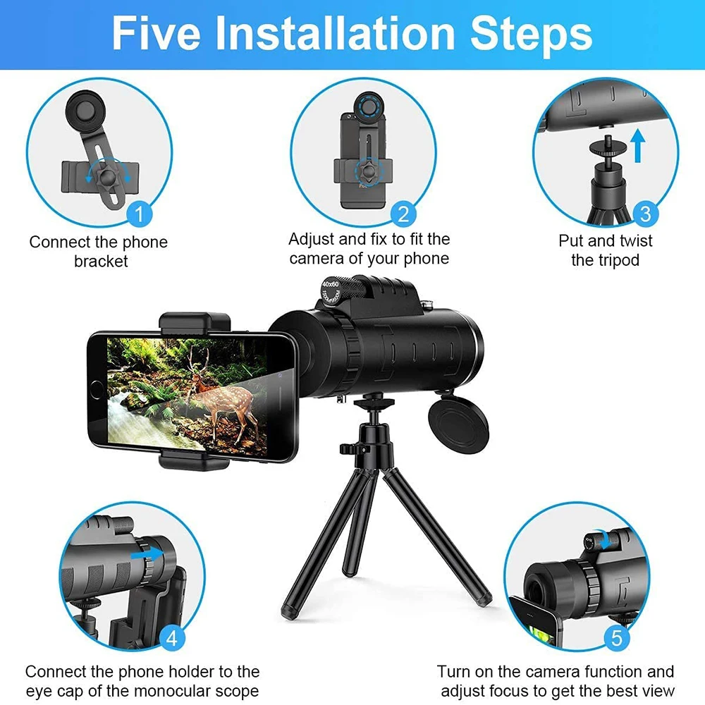Телескоп 40X60 Монокуляр с низким освещением ночного видения HD портативный уличный охотничий кемпинг наблюдение за птицами дорожный телескоп