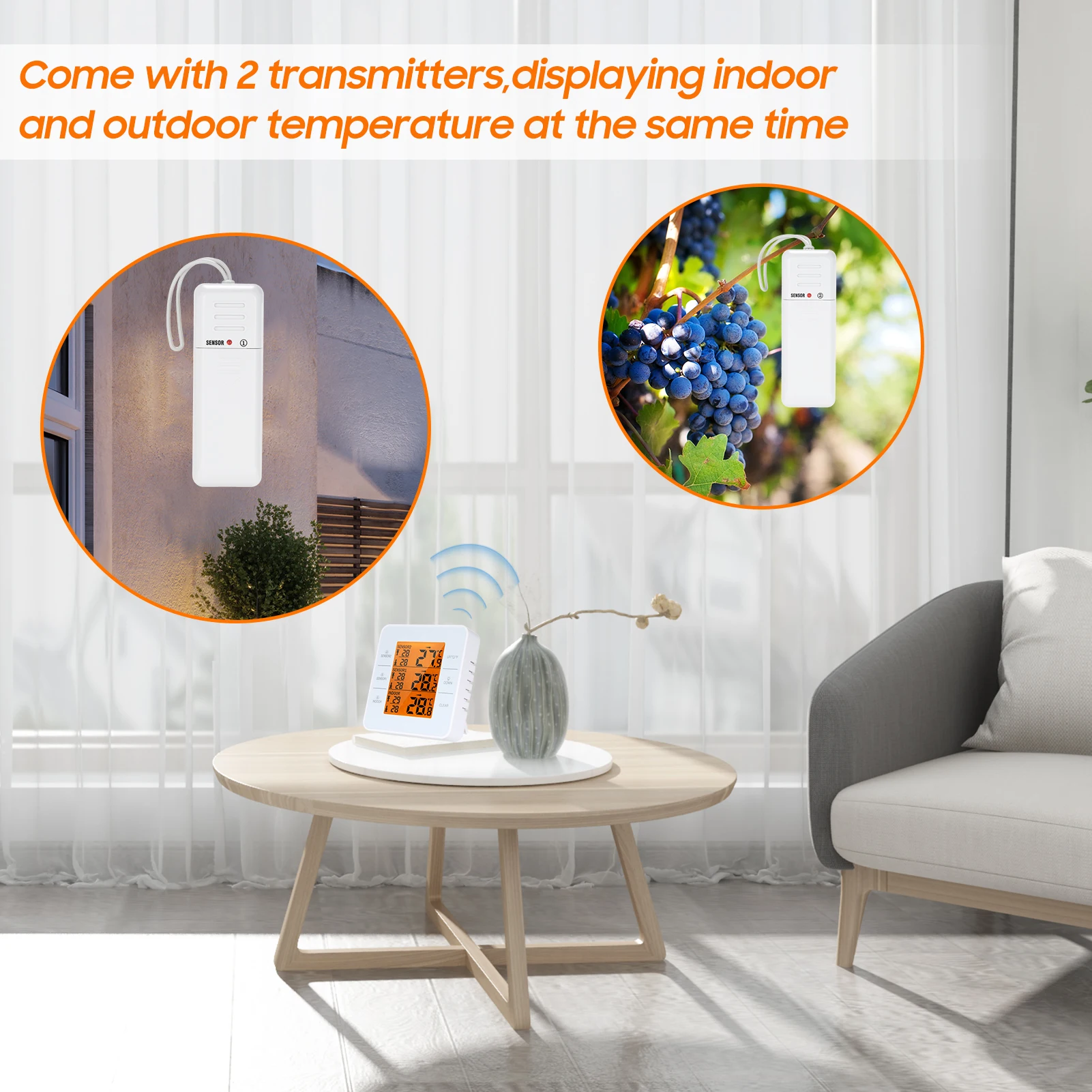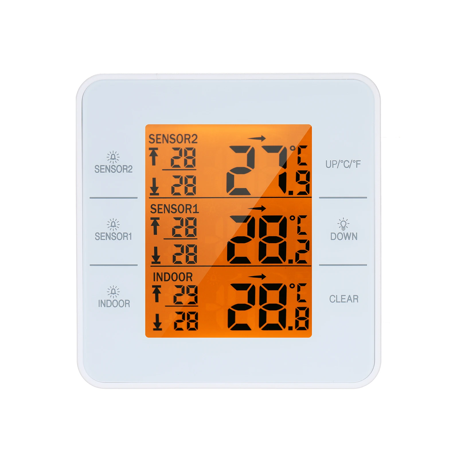 Широкий диапазон измерения температуры в помещении (-10 ℃ ~ 60 ℃/14 ℉ ~ 140 ℉) и Диапазон измерения температуры на открытом воздухе (-40 ℃ ~ 60 ℃/-40 ℉ ~ 140 ℉) С регулировкой температуры ℃/℉.