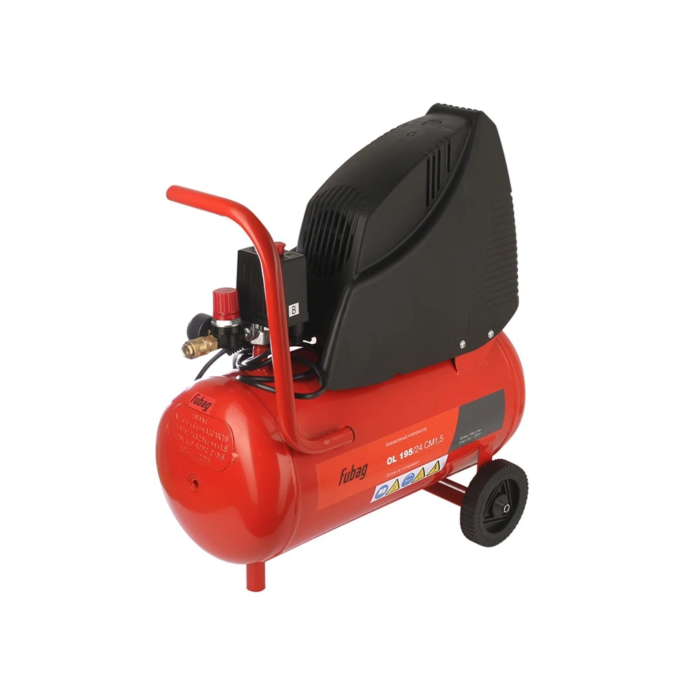 The compressor fubag ol 195/24 cm1.5 a6cc304koa601 is used for household purposes for injection of air under pressure with compression in 8 thermospheres. Output compression is adjustable to produce the required flow. The portability of the compressor is due to the small size, weight, wheels and handle. Equipped with a receiver for 24 liters, which provides flow stability and reduction of vibrations.