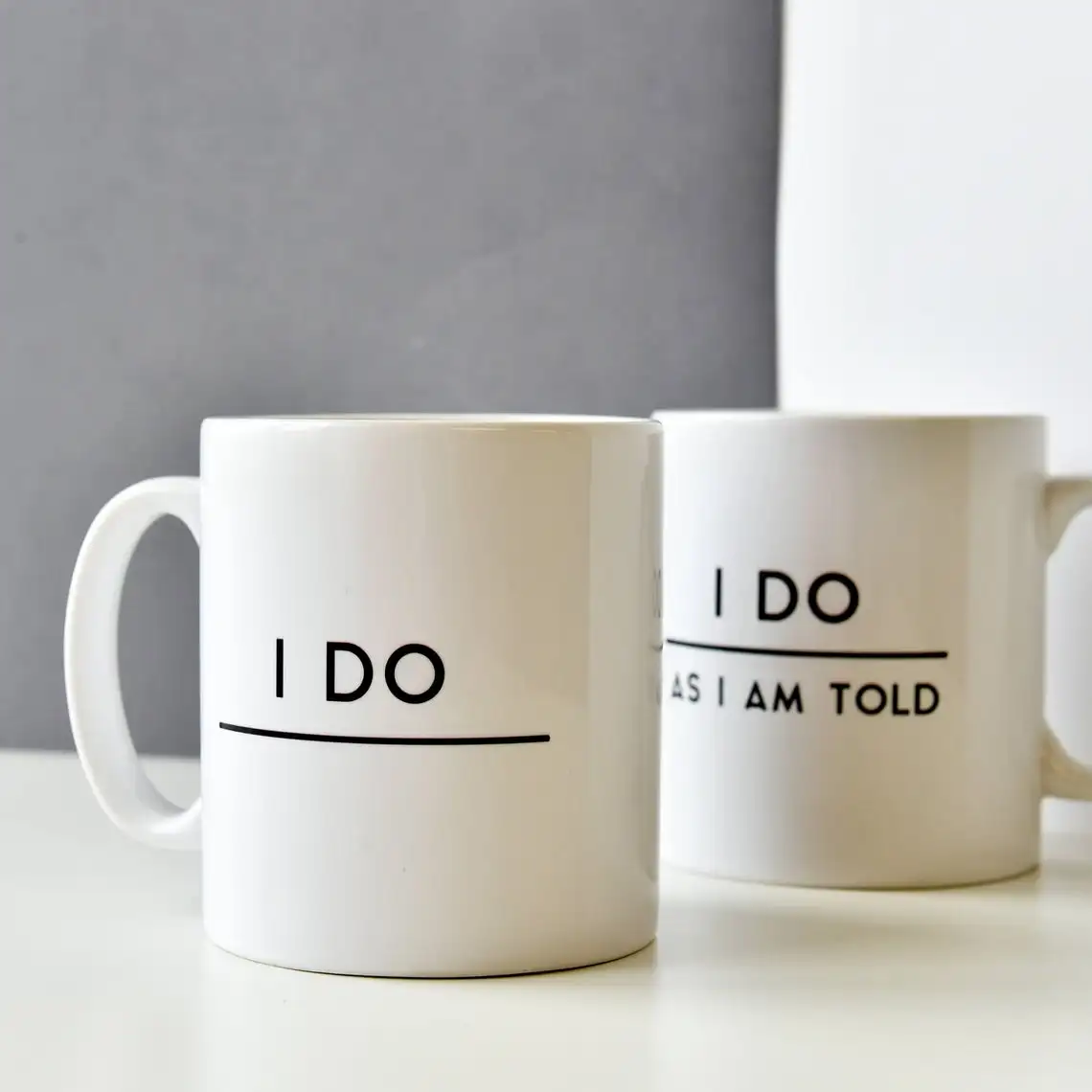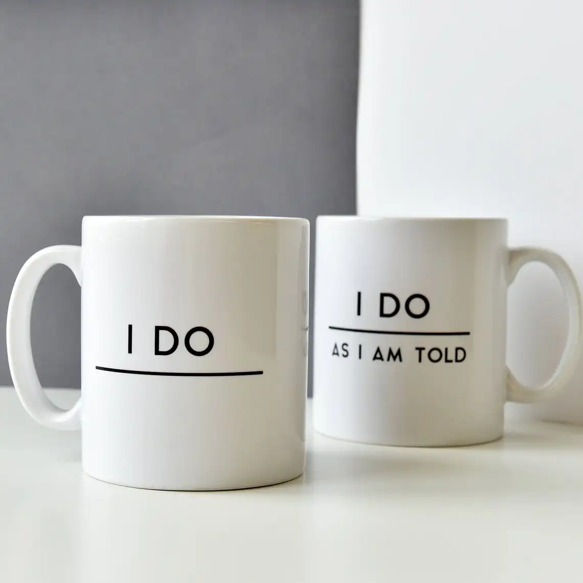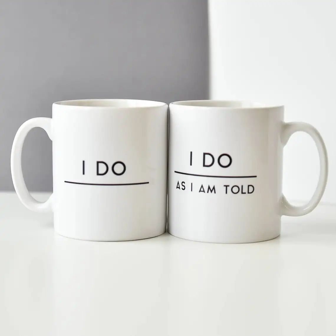 Эти Юмористические кружки для пар делают отличный свадебный подарок или Подарок на годовщину. Пара кружек state, ''do' на одной кружке и 'I do, как I'm tod' на другой. Черный современный шрифт напечатан на основе белой эмали.