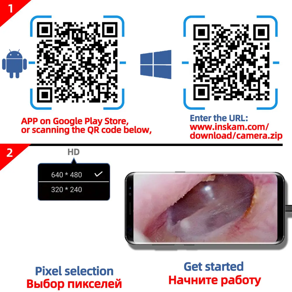 Электронная микро-камера, может достичь ушной копания. Наблюдение всего процесса в режиме реального времени через usb-кабель для передачи данных.