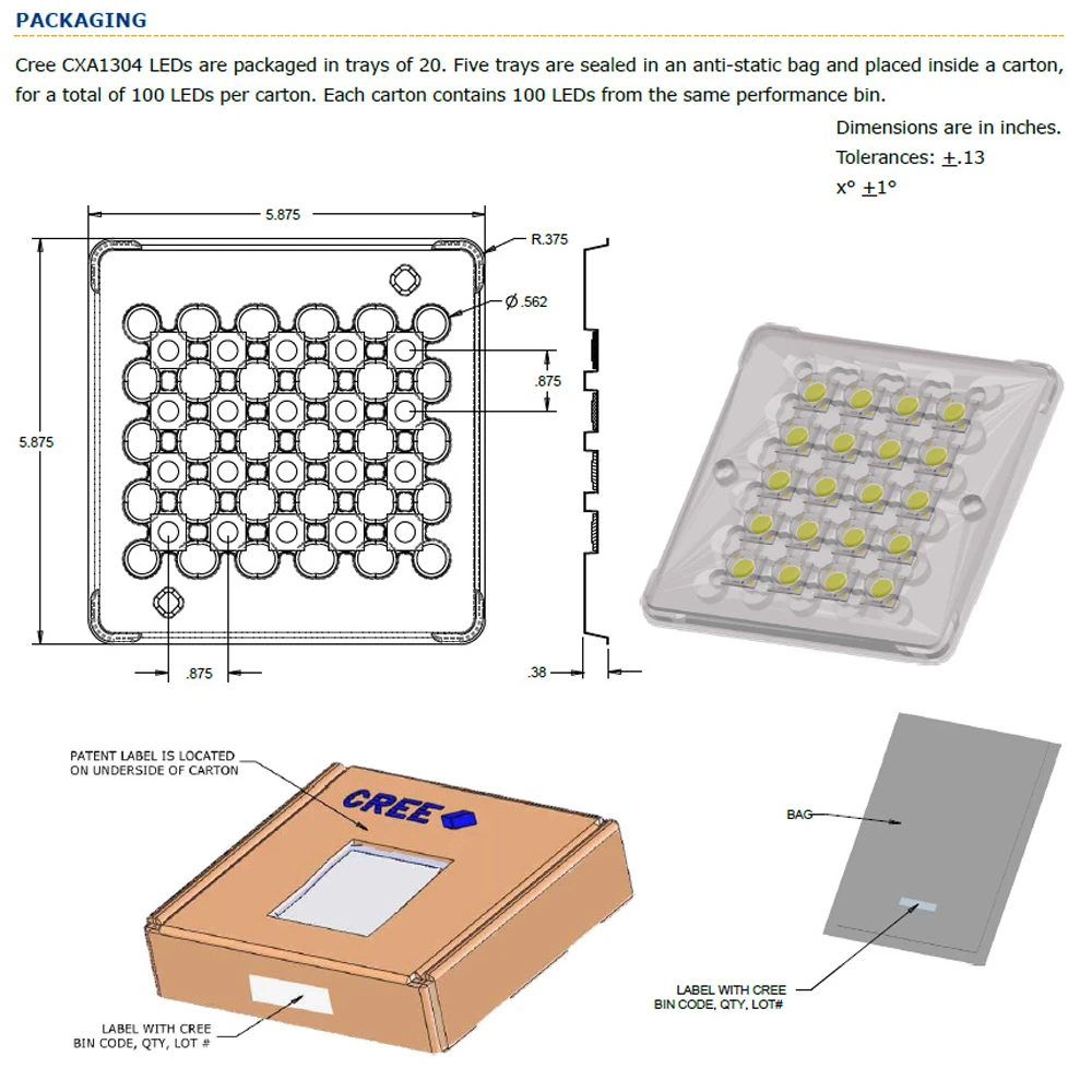 Диаметр:13,35x13,35 ммУгол обзора:115 °Цвет излучения:Белый/теплый белыйЛюмен мин.:300-1000лмКельвин:3000K/4000K/5000KНапряжение:9 В/36 ВТок:100-200mA (36V), 400-1000mA (9V)Максимальная мощность:10,9 ВтПосылка включает:1 шт. или 5 шт. Cree XLamp CXA1304 COB светодиодный