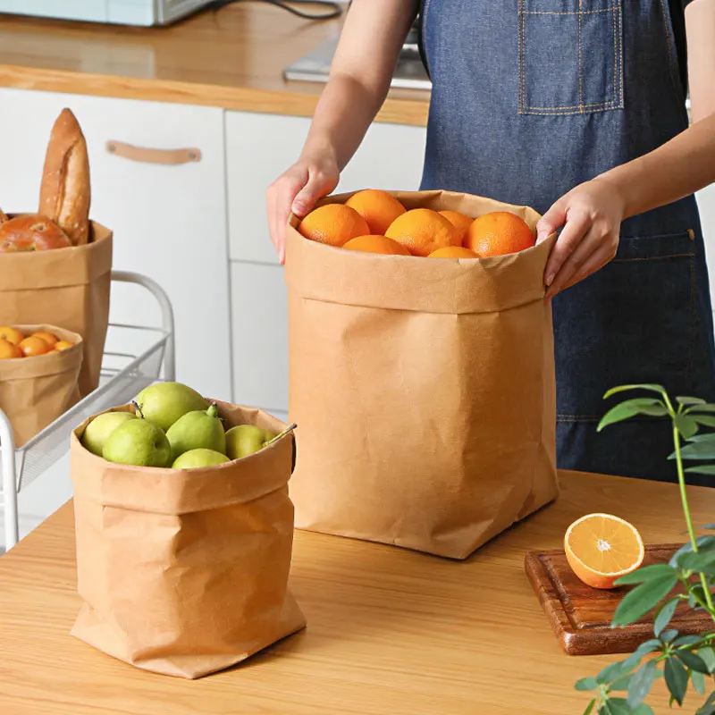 Водонепроницаемый мешок из крафт-бумаги, цветочные горшки для растений, кухонный настольный мешок для хранения, многоразовые прочные бумажные пакеты для хранения еды, фруктовые игрушки