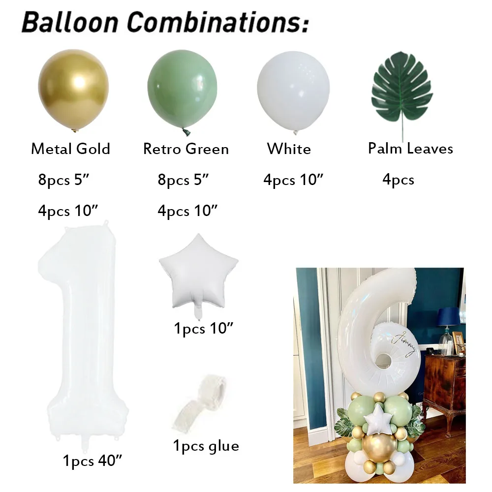 137Pcs/set Retro Green White Balloons Garland Chrome Gold Balloon Chain Arch for Baby Shower Bridal Wedding Party De | Дом и сад