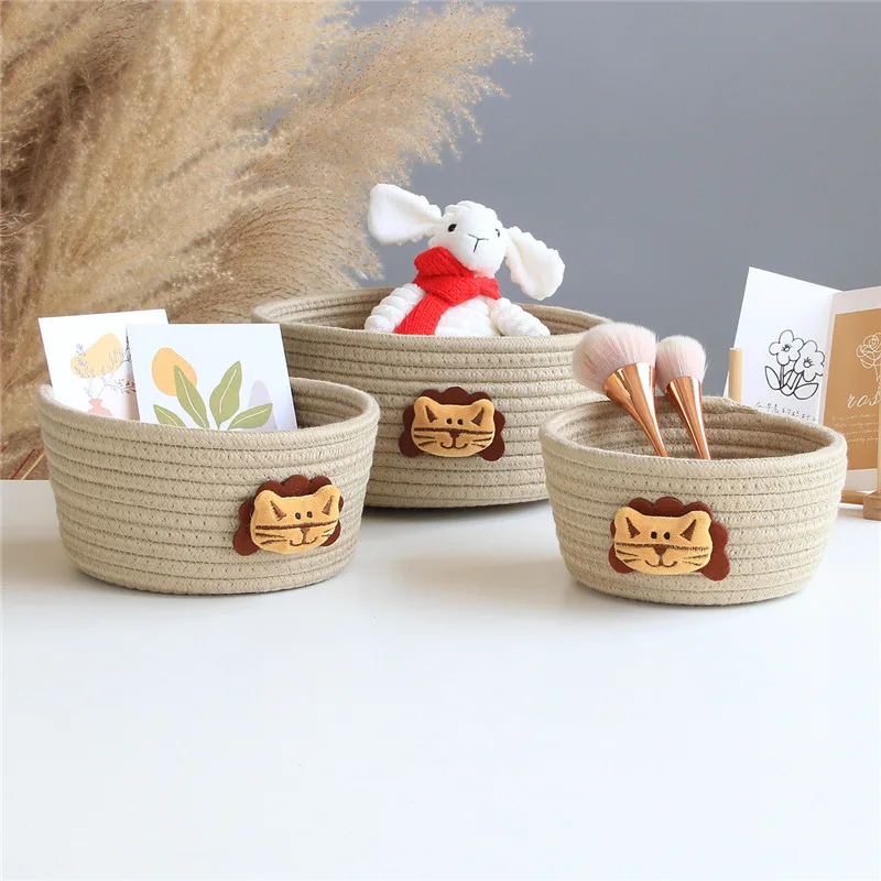 Мультяшные животные, хлопковые корзины для хранения веревки, детская корзина для белья и грязной одежды, тканые детские игрушки, настольный органайзер, коробка25