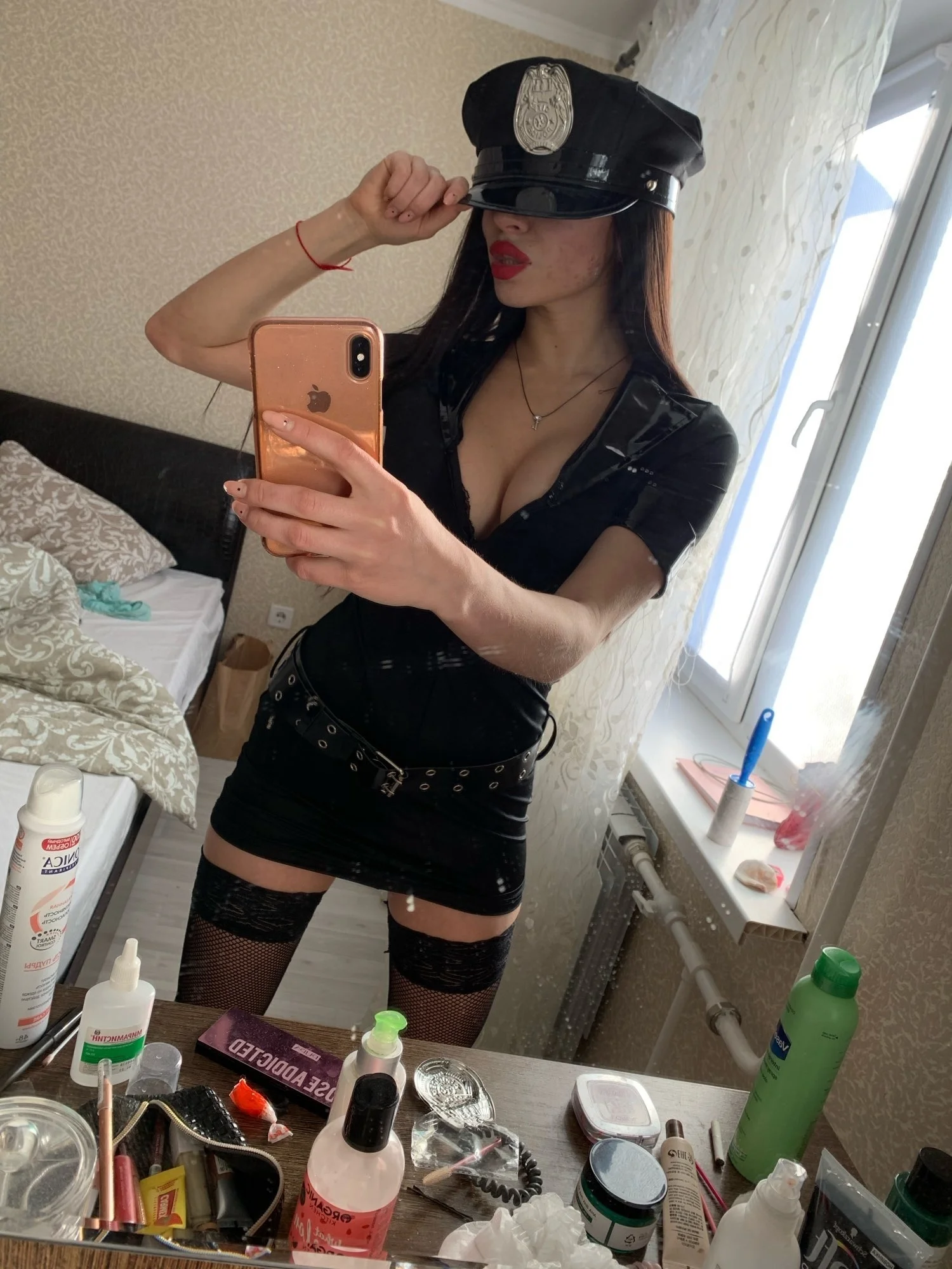 1 комплект: платье + пояс + шляпа + наручники
