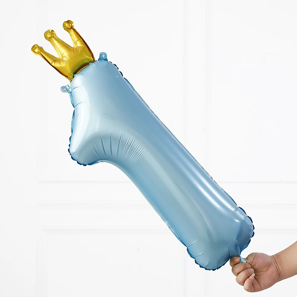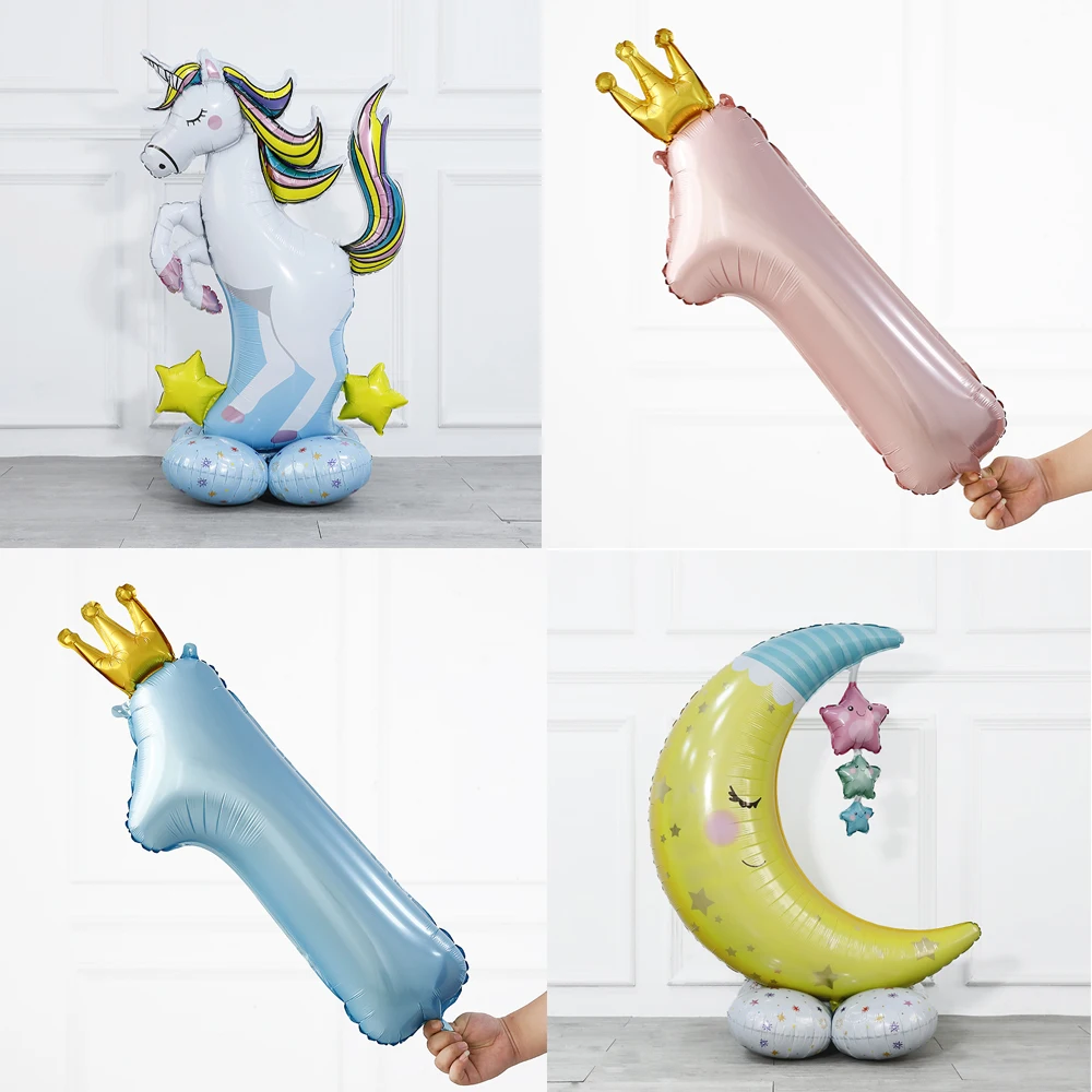 Гигантский стенд Единорог Лошадь фольги шары 30 дюймов номер с короной жемчуг синий 1-й воздушный шар Дети День рождения Свадебные украшения
