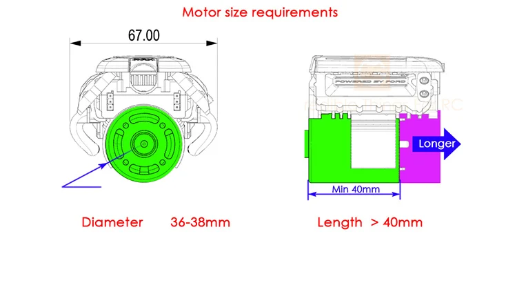 Подходит для 36-38 мм двигателя 1/10 RC гусеничного автомобиля TRX4 Bronco AXIAL SCX10 D90