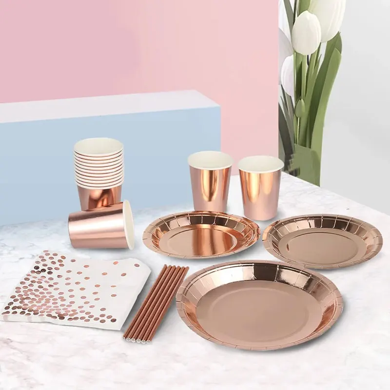 3 применимых места: Эта Праздничная бумажная посуда используется для дней рождения, свадеб, юбилеев, детских душа или других важных случаев, а также может использоваться для ежедневного семейного питания; Одноразовые продукты, удобные и практичные