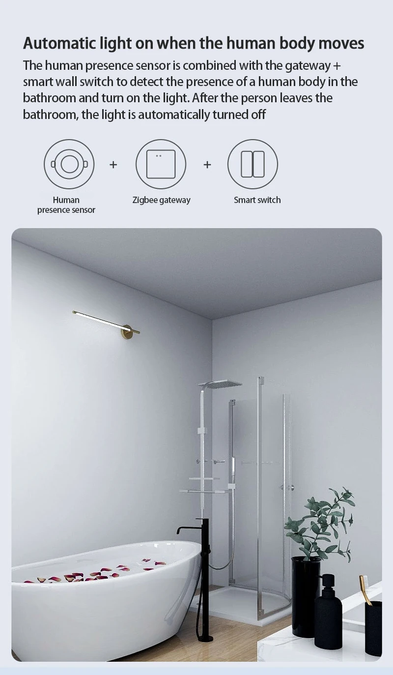 This product solves the pain points that traditional human sensors cannot detect the presence of a static human body. Using advanced infrared radar technology, it can accurately detect whether there are people in the area, whether it is active or static.