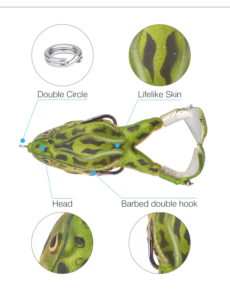 Детали тела с высоким разрешением, реалистичные 3D глаза и почти настоящие плавательные действия, безупречно повторяет фактическую лягушку или Лягушку-бульдога, помогает рыболовам притягивать больший улов