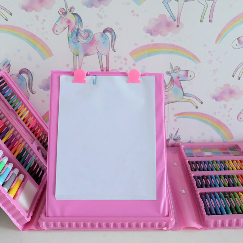 42-208PCS Children Art Painting Set Colored Pencil Crayon Watercolors Pens With Drawing Board Set Toy Kids Educational Toys Gift