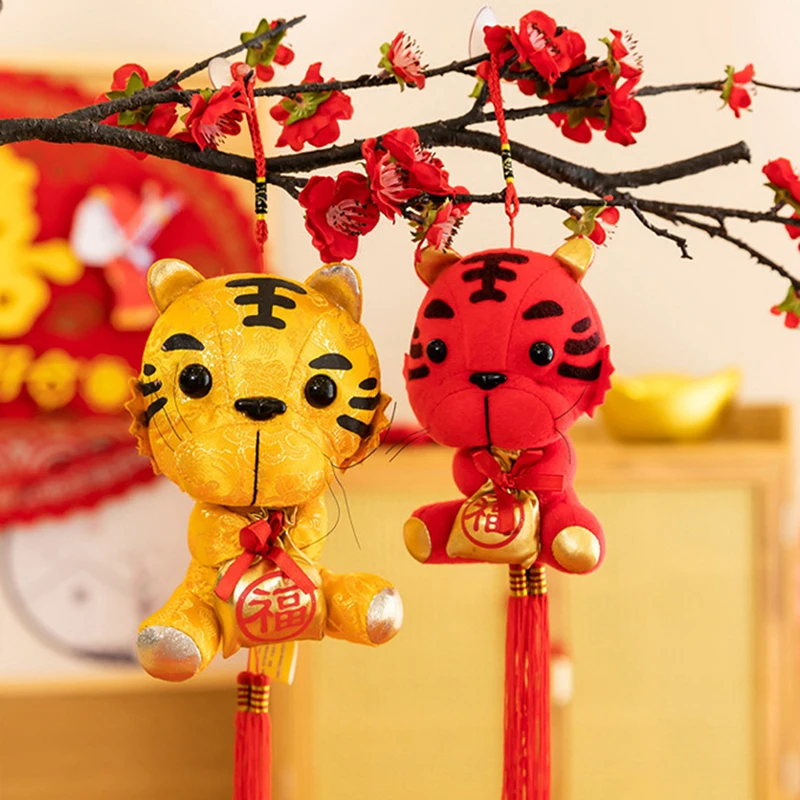 2022 год красный тигр талисман кулон мягкая плюшевая игрушка китайский стиль рождественский подарок мягкая игрушка$0,6/Шт/Лот 1