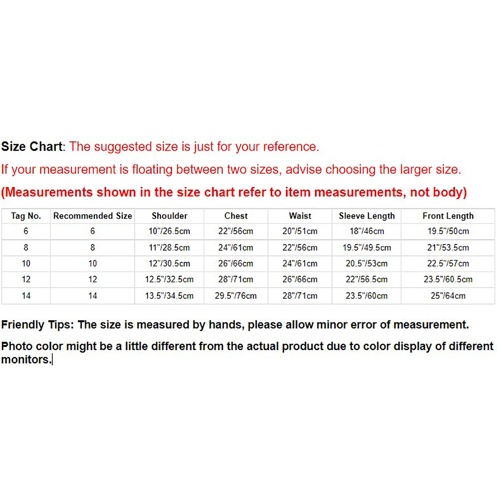 Size Table means age ranges for girls, but they are for general guidance only.