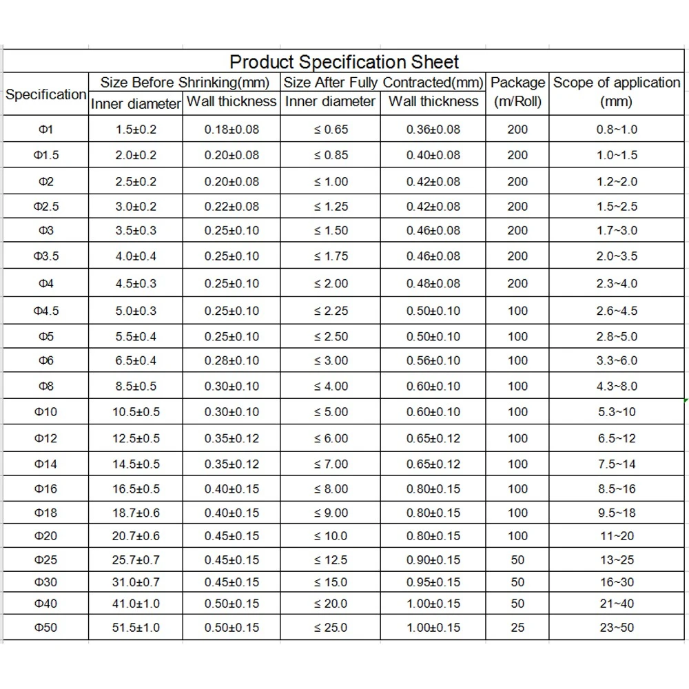 Термоусадочная трубка разработана Экологически чистая огнестойкая термоусадочная трубка с использованием специально разработанной формулы высоких полимеров, через перекрестное соединение с помощью электронного ускорителя и непрерывного расширения. Он выполняет экологически чистые, гибкие огнестойкие, быстросохнущие и стабильные характеристики. Он прошел сертификацию ROHS UL.