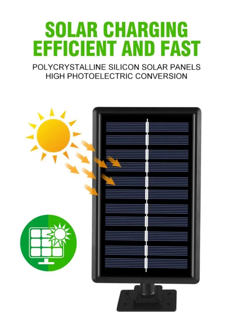 【Время вращения и длительной работы 】 панель солнечных батарей может быть отрегулирована на 120 ° влево и вправо, а 180 ° вверх и вниз, гарантируя, что панель поглощает достаточное количество солнечного света. Работает от нашей высокоэффективной солнечной панели и перезаряжаемой батареи 4800 мАч. Может светильник до 12 часов летом и 5 часов зимой после полной зарядки. Время зарядки: 6-8 часов. Нет нефти, нет пожаров, нет загрязнения и нет счета за электричество.