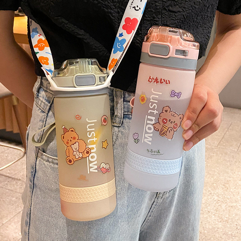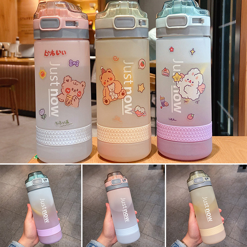 Спортивная бутылка с мягкой присоской, 600 мл, милые весы, бутылка для воды, откидная верхняя крышка с замком, градиентный цвет, для путешествий на открытом воздухе, GRSA889