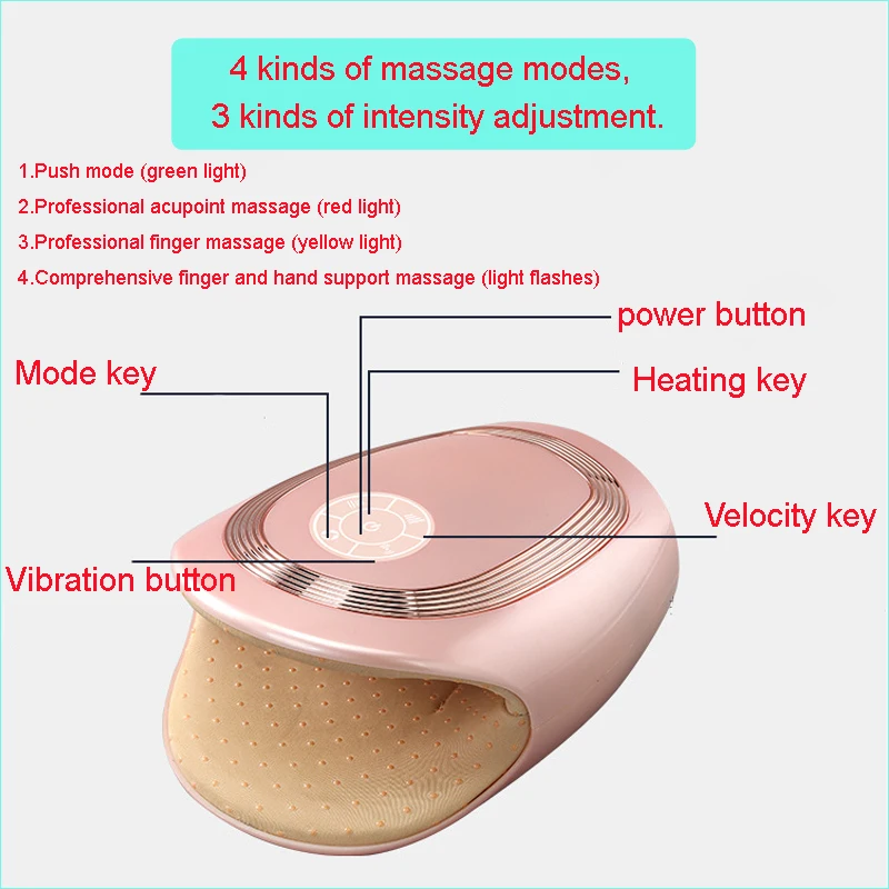 1.3D волновой прокатки, чтобы нажать все акупунктурные точки на руке, 4 режима массажа, 3 интенсивности, чтобы снять жесткость и онемение рук, снять стресс и устранить усталость.