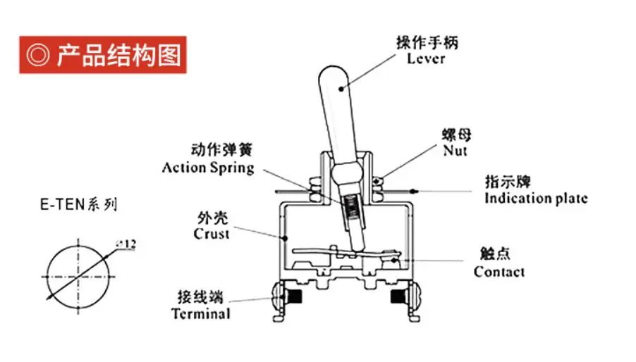 Toggle Rocker Switch Self-locking and self-resetting copper screw feet E-TEN-1021/1121/1122/1221/1321/1322 Hole size 12MM 15A250VAC Type:E-TEN-1321