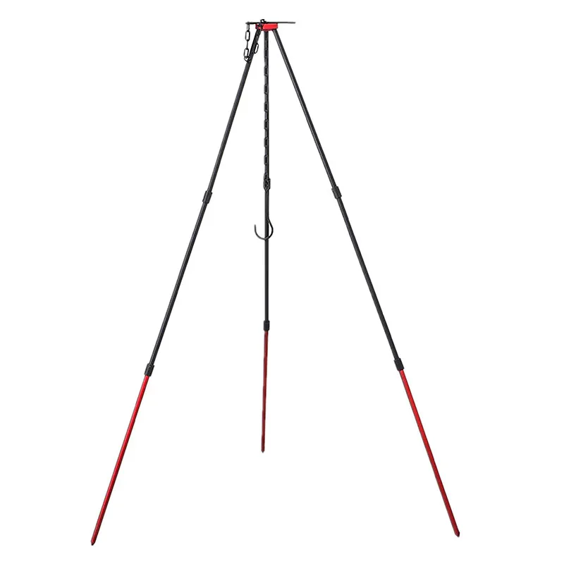 Штатив для кемпинга имеет регулируемую подвесную цепь, которая может регулировать высоту подвесного горшка в зависимости от различных случаев.