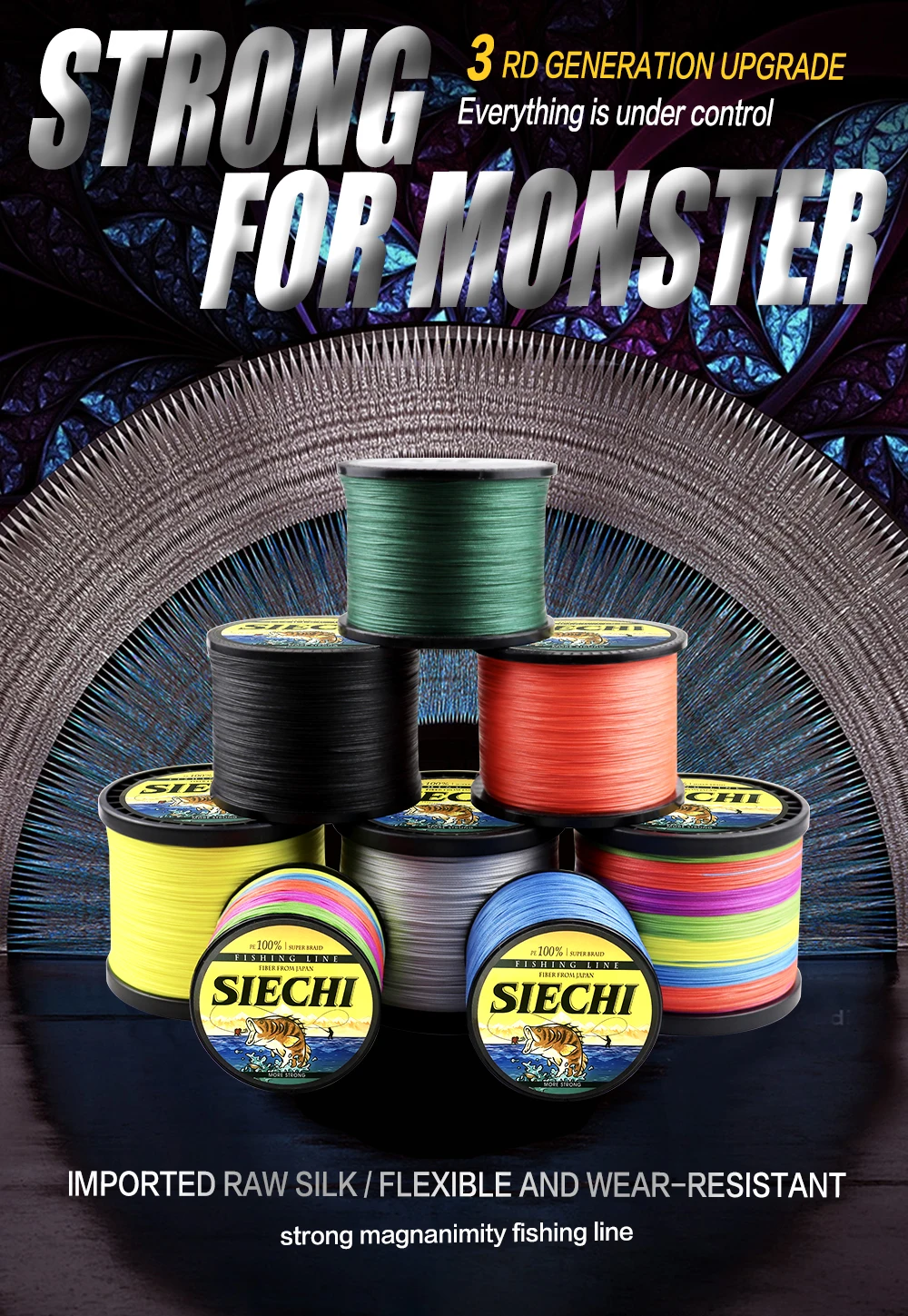 8-жильная полиэтиленовая леска, материал из Японии, уникальная конструкция оплетки, изготовлена из сверхпрочных полиэтиленовых волокон