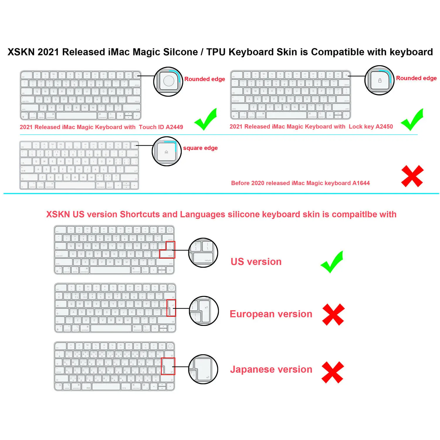 Информация о продукте.:Подходит для 2021 новейших Apple iMac М1 Чип 24 дюйма Волшебная клавиатура A2449 с сенсорным ID и A2450 с Lock Версия США. С нами можно связаться следующими способами проверить вашу модель iMac избежать покупки неправильно