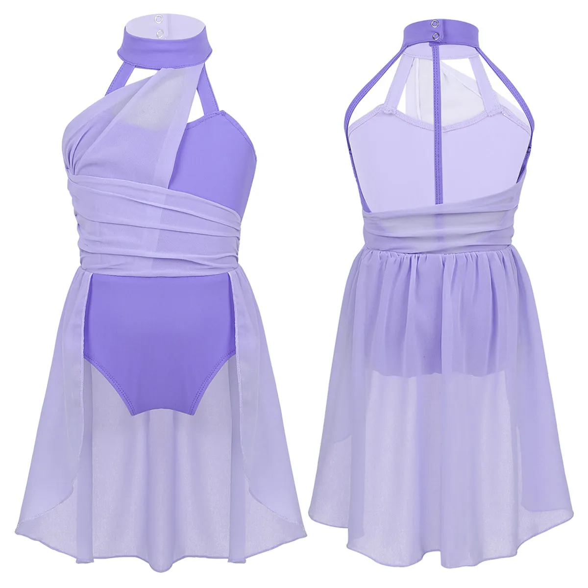 Танцевальное трико платье изготовлено из полиэстера и шифона, ручная стирка.