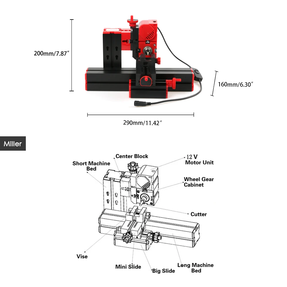 Размер токарного станка по металлу: 29*15*16 см/11,42*5,91 * дюйма