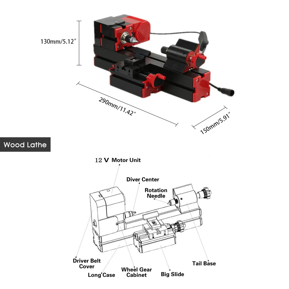 Размер токарного станка по дереву: 29*15*13 см/11,42*5,91 * 5.12in